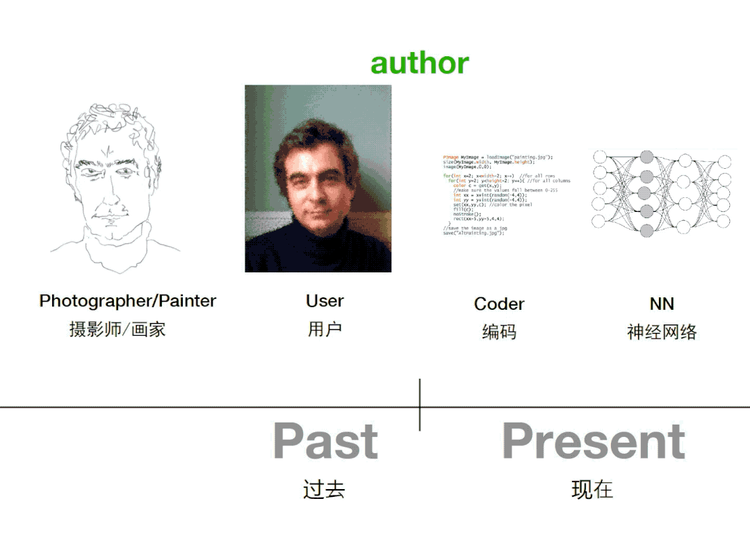 让我们回到开头的讨论,“谁是作者?”一开始是画家,之后有了用户,现在有了编码和神经网络,在未来还会有排列(Permutations),我们所讨论的作者已经不是作品本身的作者了,而是工具的作者——是工具成就了作者。
