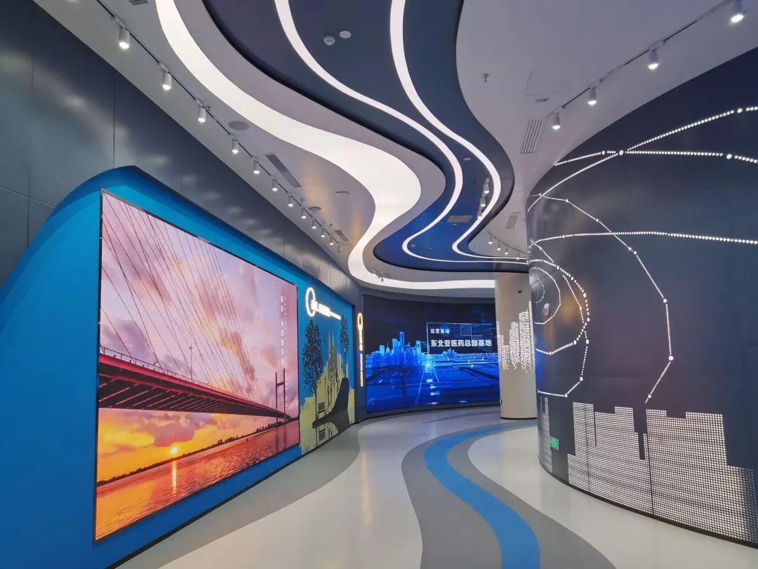 这部分从实施的“健康中国战略”和“龙江战略” 为切入点,结合北药集团的战略布局等内容,通过多媒体影片、艺术墙面、LED大屏、软膜灯箱等多媒体艺术装置,更直观的展示了北药格局。