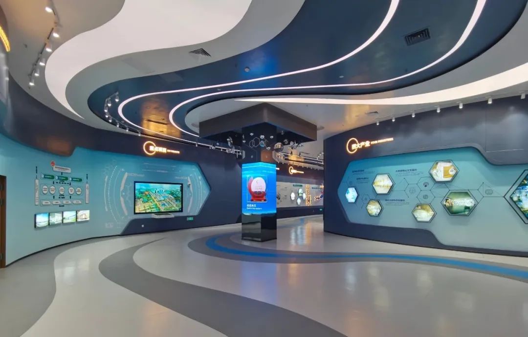 展示馆以“聚国药精粹、筑产业新城、弘医养智慧、扬健康服务”为主题,包含序厅、背景篇、品牌篇、产业篇、项目篇等内容,美创团队参与了这一展馆工程。