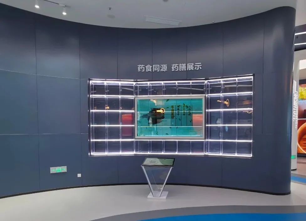 同时以全息柜墙等多媒体互动装置将“药食同源”理论呈现了出来,让参观者可以更深入的认识这一理论。