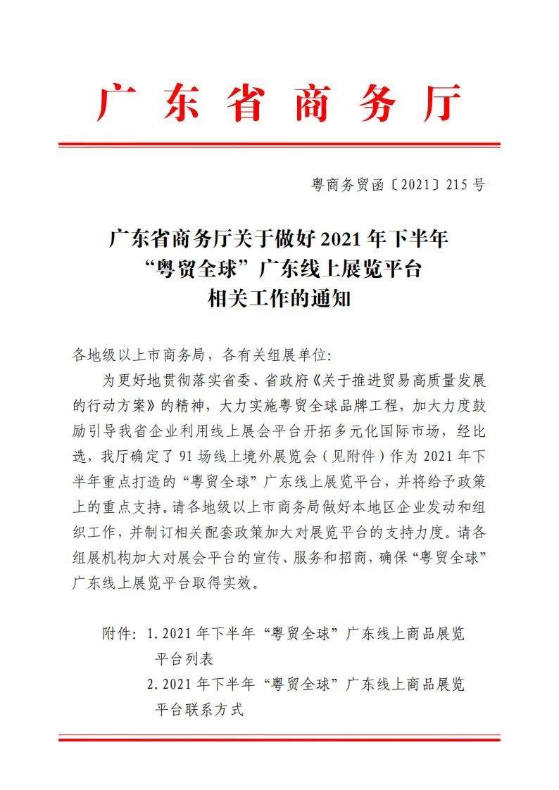 阿拉丁国际站Lightstrade主办的系列线上品牌外贸展览会,打造线上境外照明展览会平台,获广东省商务厅“粤贸全球”广东线上展览平台政策支持