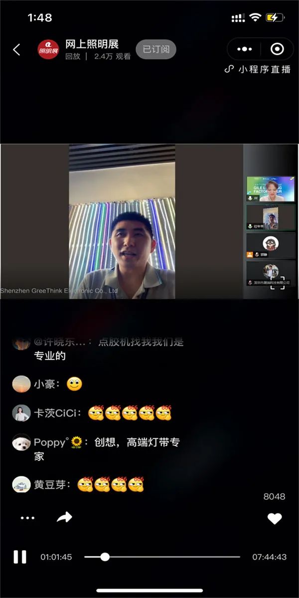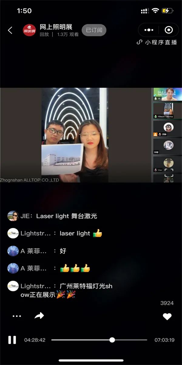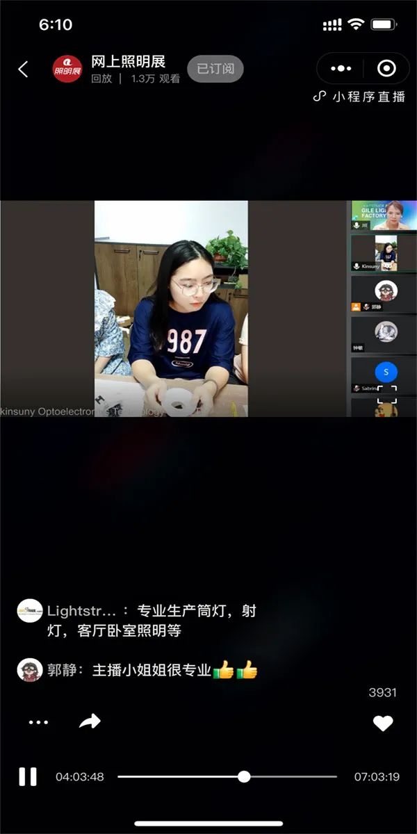 创想光电、集泰化工、耀嵘科技、法啦沃(杭州)照明、有容照明、科谷电源、晟瑞科技等LED照明行业的上中下游实力出口展商代表积极亮相连线活动。所有参加Factory Tour线上英文连线直播活动的展商,均在短短的十五分钟内,通过云看厂、云游展厅、云上互动,热情满满的专业讲解和丰富的互动,在有限的时间内达到了饱满而理想的展示高度,收获买家们留言索要样板和联系方式。