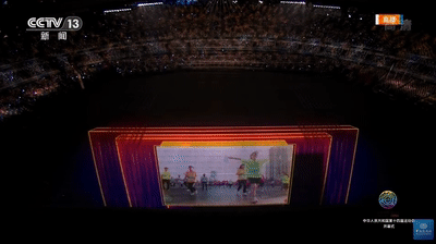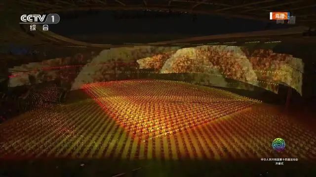 第十四届运动会开幕式设计了2021面鼓组成迎宾鼓阵,以此来表达三秦儿女的奋斗精神。并使用鼓阵进行现场倒计时,而倒计时也采用创新的形式,用五谷丰登、四海同庆、三秦大地、两个一百年,万众一心来进行。