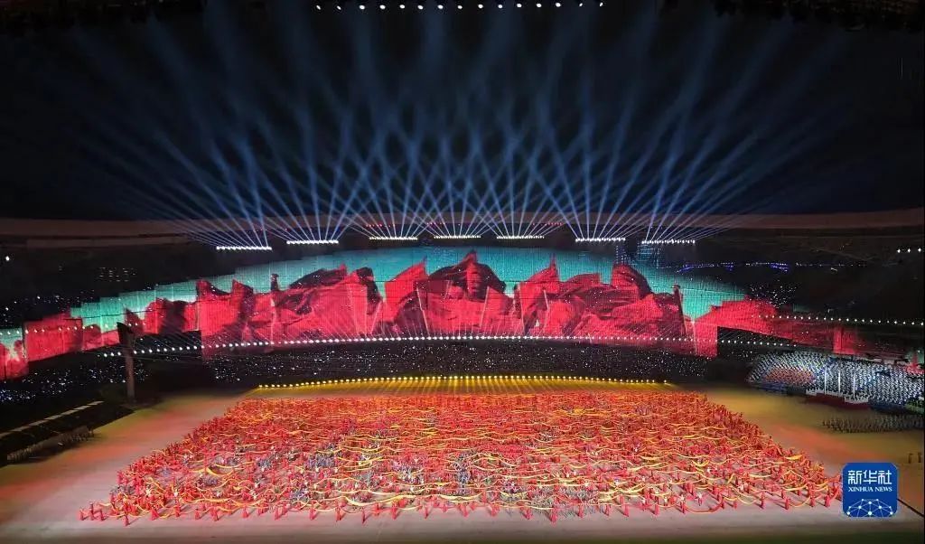 中华人民共和国第十四届运动会开幕式于9月15日20时在西安奥体中心体育场举行。本次开幕式围绕“建党百年 体育盛会”的主题进行创意策划。由北京北奥艺通曾策划,开幕式由姜浩扬、姜钢担任总导演。开幕式文体展演通过现代视觉技术,融合呈现优秀传统文化、革命文化和社会主义先进文化,给观众强烈的视觉盛宴。
