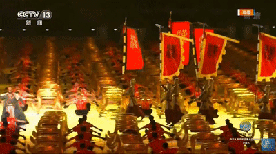浓浓的陕西元素,贯穿开幕式文体展演始终。鼓阵中象征黄河水的金黄色装饰,地区传统戏剧秦腔的再现、陕北古文化的展示及音乐中陕北、关中、陕南音乐元素都突出了深厚的文化底蕴。