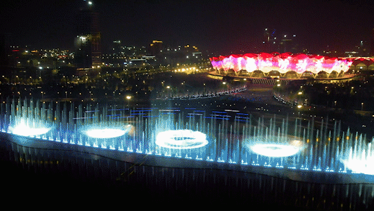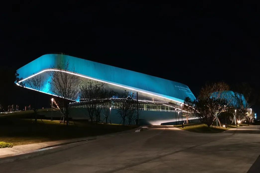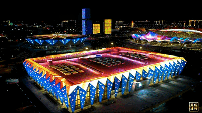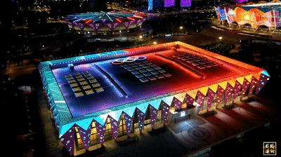 另外值得一提的是奥体中心的灯光秀,当夜幕降临,西安奥体中心被点亮,在灯光映衬下,“一场两馆”灿若星河。