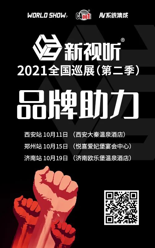 由新视听(WORLD SHOW、CA001、AV系统集成)打造的“2021新视听(第二季)全国巡展”将于10月11日西安、10月15日郑州、10月19日济南举行。