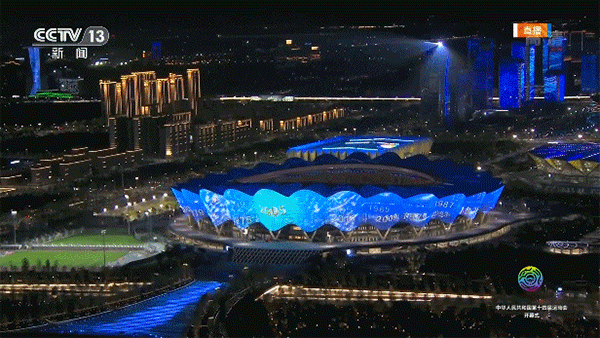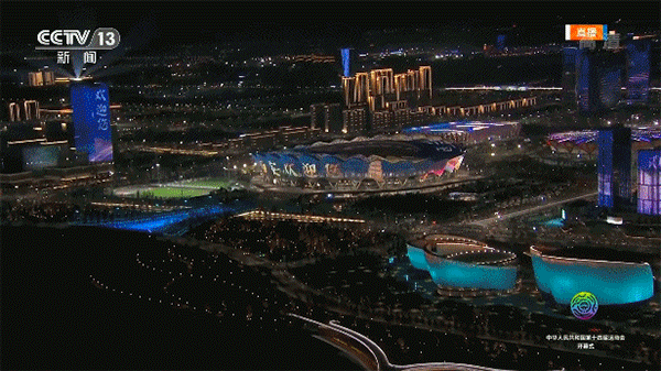 另外值得一提的是奥体中心的灯光秀,当夜幕降临,西安奥体中心被点亮,在灯光映衬下,“一场两馆”灿若星河。
