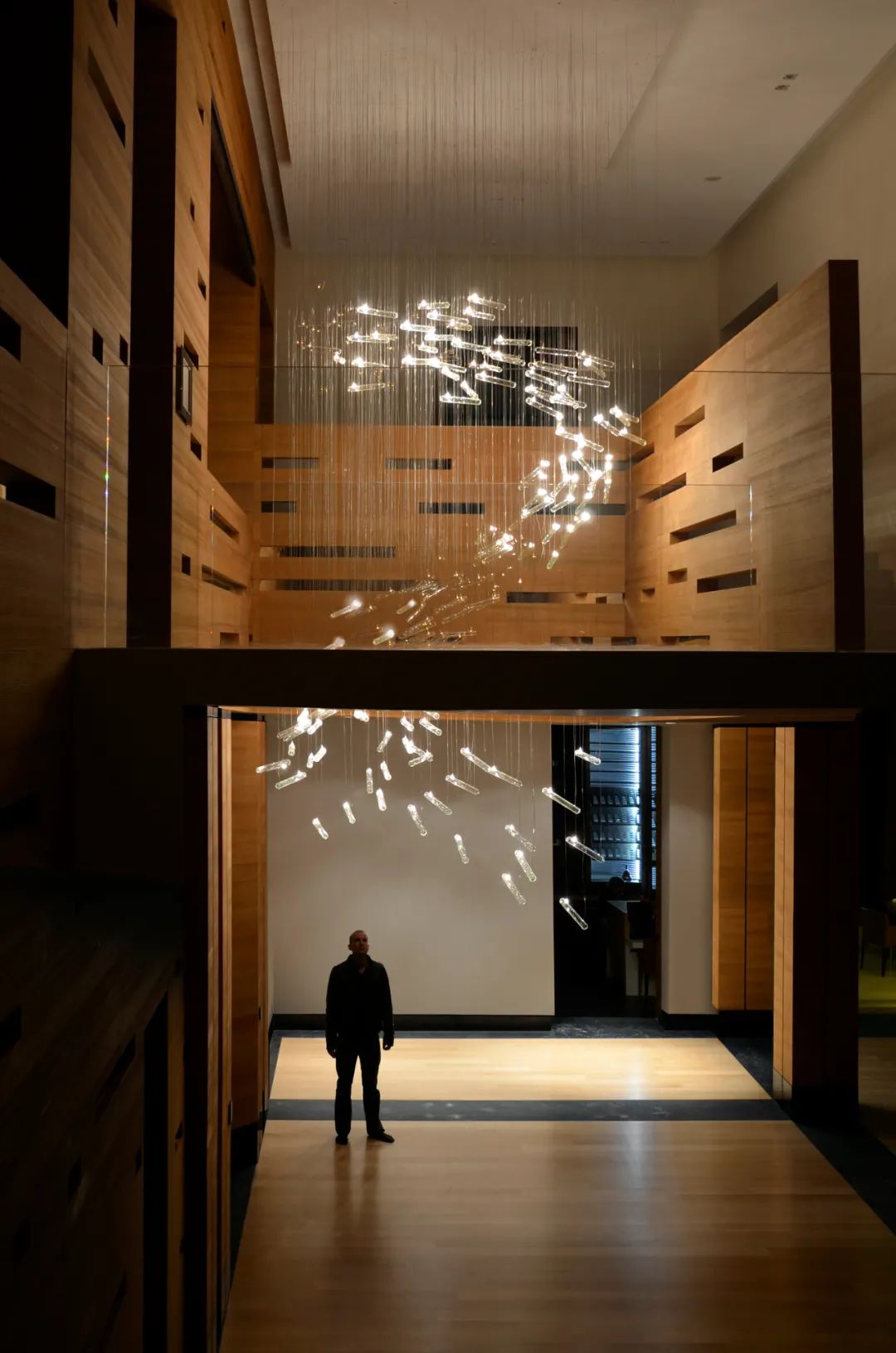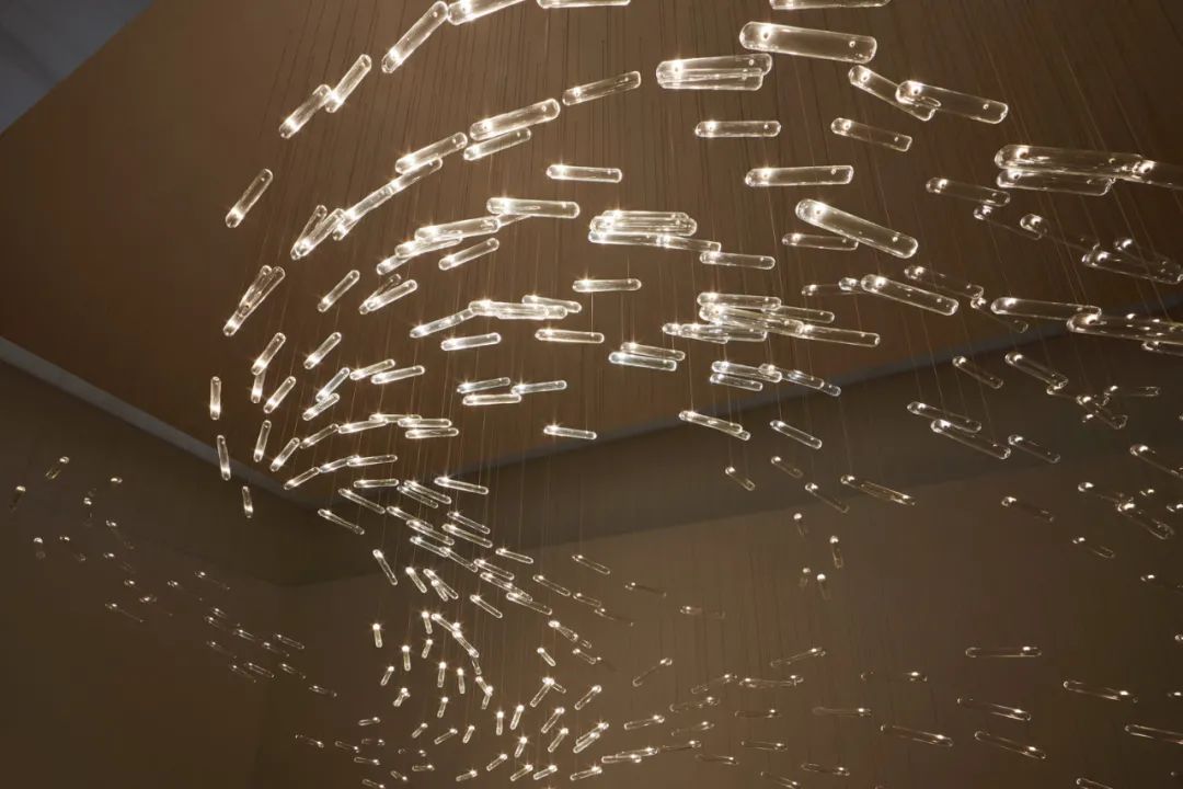 这种自然现象形成了Flylight的灵感来源,为此将群行为转化为基于代理的软件,专为这项工作而开发。它由精致的玻璃管组成,以不可预测的方式点亮,部分响应外部刺激。装置点亮的图案不是预先编程的,而是具有互动性的:就像一群真正的鸟。