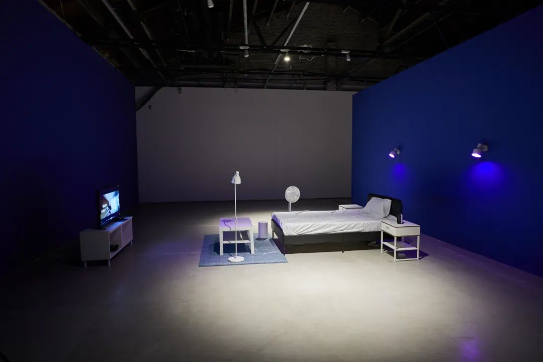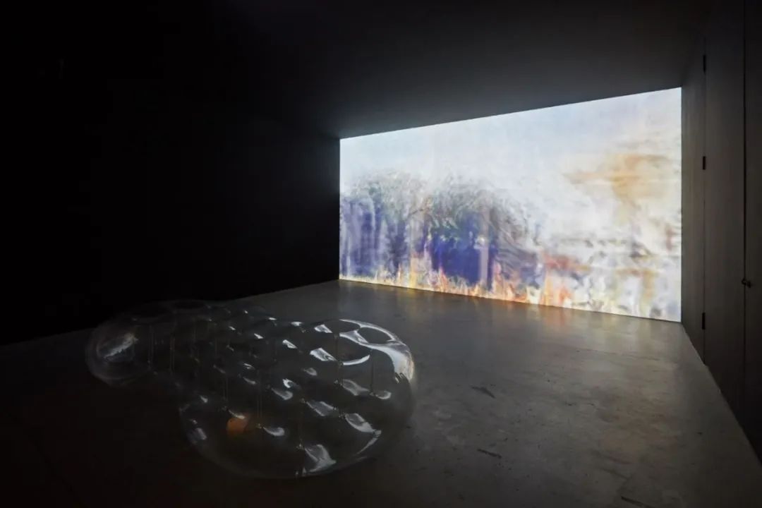 在这里,对真正智能的追求意味着与人类思维相媲美的通用人工智能。这又让我们回到了古老的人工智能难题,无论是过去还是现在,生化大脑模型的人类智能都是人工智能的逻辑范式参考,并将模仿人类的认知、感知和意图设为终极人工智能的目标。而另一方面,一种独立于人类范畴的智能概念,很可能为人工智能的研究想象和应用开辟更加自由的疆域。如果人工智能(可能会需要另一种命名方式)能够像吉尔伯特·西蒙栋(Gilbert Simondon)很久以前所主张的那样,被看作是一种自主和自生的技术现实,或者如果我们在引用机器智能时遵循艾伦·图灵关于性别和物种中立性的模糊暗示,我们与人工智能的二分法,人类与人工智能机器之间由模仿引起的竞争和从属关系,主/从二元论可能不再作为一个有效的命题或悖论。伯纳德·斯蒂格勒(Bernard Stiegler)对西蒙东的阐述体现了他对人性与技术性(technicity)的互为关系的深刻见解。他写道:内在与外在同时由一个造彼亦造此的运动所建构:在其中两者同时创造对方,就好像被称为人性的东西其实是技术所致。内在与外在不过是一物:内就是外,因为人(内在)本质上由工具(外在)所定义。17 技术物由人类创造,也呈现出其自身的自主性。如布赖恩·马苏米(Brian Massumi)18 解析西蒙东时所言:“一个技术发明并没有历史的起因,而拥有‘绝对的起点’(absolute origin):它具有一个自主的未来性效力,一种有效的自我存在,而这种存在本身则是决定其潜能的条件。相比于起因,发明与具有自我调节的发生(self-conditioning emergence)的关系更大。” 19 这种自主作用随着受人工智能启发的计算设备越来越多地出现,也愈加表现出具有自组织、自我繁衍之自生系统的潜力。从这个角度来看,我们可以想象这样一种人工智能,它从人类尺度所假设的智能中解放出来,可以被看作是在另一种维度下,具有能动力的实体。它可以实现一种不同于人类的、与人类和谐共生的主体性。也正是从这个角度来看,我们现在可以回到我在本次演讲开始时提到的展览“人工智能的兑现:卑弃与救赎”(AI Delivered: The Abject and Redemption),作为另一种人工智能艺术的案例研究。展览分为两部分,第一部分的副标题是“卑弃”(The Abject)。艺术史学家哈尔·福斯特(Hal Foster)将1970年代以来的艺术总结为对 “真实的回归(The Return of the Real) ”之疾呼。他曾说,真实,是被识别为创伤与卑贱形式的真实身体与社会场所。福斯特认为,“观念的转变——从作为再现效果的现实到作为创伤的现实——可能是当代艺术中至关重要的。” 20 如果说当代艺术不可避免地是被人工智能的无所不及所侵蚀的当代经验的一部分,那么新的落魄之地可能正是被资本所裹挟并被地缘政治所左右,强加给人工智能的工具化所控制与支配之地。然而,悲困之地也正是抵抗与创造的场所。对人工智能拟人化的过度欲求不仅成为人工智能本身的负荷,也是亟待被释放的痛苦——这种双重叙述构成了展览第一部分的策展框架。让我们来看看展览中的作品。进入展厅,艺术团体Tonoptik的作品《本能》(Instinkt)映入眼帘:一盏发光的台灯好像被置于旷野中。一种不稳定的平衡出现在灯与观者之间。台灯在强化学习(reinforcement learning)算法的协助下,掌握了一套自我防御机制,以避免人们靠它太近;在其安全感可以保证的状态下,又在吸引着他们。灯发光的动态和强度,以及它所产生的声音音量和性质,是一个缺乏安全感的的神经网络,努力地尝试理解潜在的危险或嬉戏。机器脆弱的本能期待着(人类的)感同身受。Tonoptik,《本能》(Instinkt),2021,展览现场 © 新视时线媒体艺术中心 摄影:钟晗两个“黑盒子”相对而立,右边是凯西·雷亚斯(Casey Reas)与杨·圣沃纳(Jan St.Werner)的动态图像《压缩影院》(Compressed Cinema)。作品采用肯·雅各布(Ken Jacob)1969年电影《汤姆,汤姆,吹笛人的儿子》(Tom, Tom, the Piper’s Son)中的画面,经由生成式对抗网络(GAN)训练的成果是一系列模糊的人型和物体,回荡于声景之中。在交叠穿杂中,我们看到那既有着具体的抽象又在卑微中显露出崇高的巴洛克式的美。谷歌深梦(Deep Dream)算法所生成的花哨的视觉迷幻在此被去势。凯西·雷亚斯 & 杨·圣沃纳,《压缩影院》(Compressed Cinema),2020 © 新视时线媒体艺术中心 摄影:钟晗