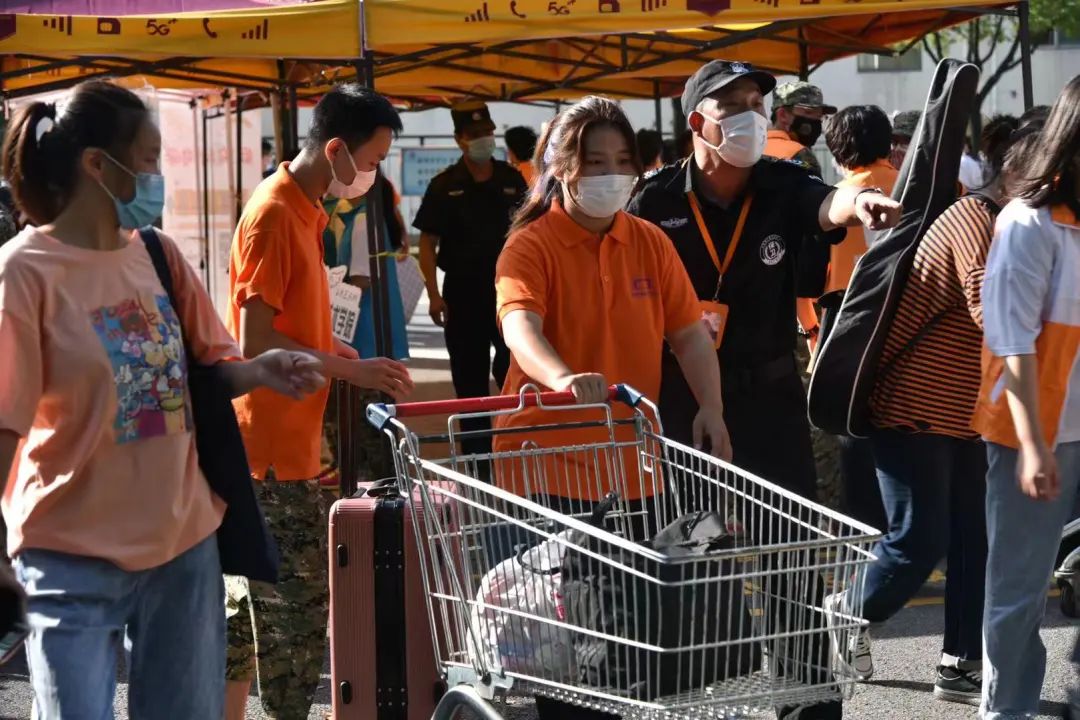 “蓝帽子”志愿者们站在各自的工作岗位上,以热情的面貌和认真的工作作风,和各位导员、老师一起迎接新生。虽然当天高温炎热,志愿者们还是尽力做好本职工作,分工明确,忙碌奔波帮助新生登记报到、引导、提行李等,奔跑穿梭在校园的每个角落。