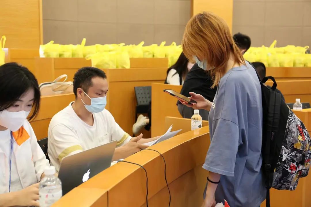 在报到过程中,各位老师和学生干部默契配合,现场的工作有条不紊地进行。期间,学院党委书记许涛携招生办、教务处、文化基础部等相关领导到现场查看新生报到情况,并通过手机现场查看实时报到数据。