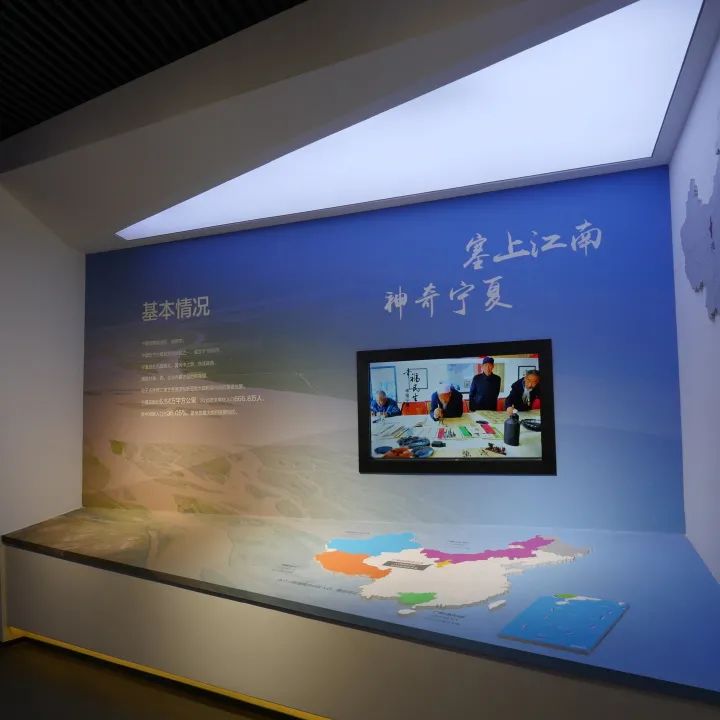 电子屏通过滚动播放,可以在有限空间里呈现无限的内容,在“今日宁夏”“回乡风情”等展示版块,电子屏就通过滚动播放的照片,展现了多样的城市风采与地貌等,参观者可以通过丰富的信息对银川有更全面的了解。