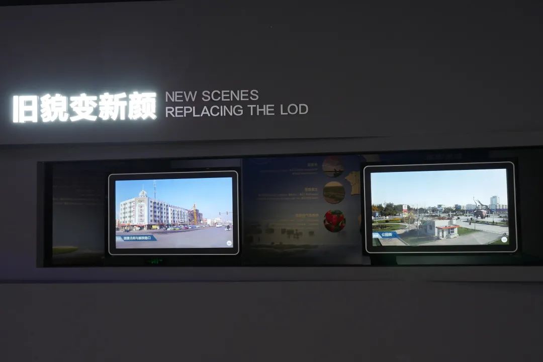 在“旧貌变新颜”版块,参观者可以通过与屏幕的互动,直观感受城市面貌的变化,这样的展现方式,对比更明显,而参观者手动变化,也加强了参观的趣味性。