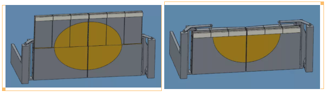 门体滑移回转机构类似“公交车门”的运动形式,但其结构、驱动形式完全不同。单侧门体需承担近10kN的水平方向风力载荷,以及水平方向较大的结构自重悬挑。此机械结构为首次研发,是该项目的难点。