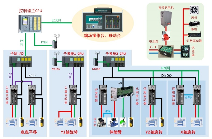 控制系统高度集成。以系统工程思想为指导,综合集成电池组供配电、计算机、PLC控制器、伺服驱动器及伺服电机、矢量变频器及变频电机、比例液压、工业有线网络总线及无线网络通讯等技术与设备,可谓集机电液于一体,本质安全前提下注重故障安全。