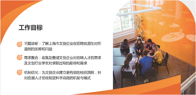 在学生端,努力向上海本土院校外拓展样本范围,尝试探索具有地域特色的应届生对于文创行业求职需求;在企业端,也试图涵盖更多更全的文化创意企业,尝试突破“大厂”思维走进更多的企业挖掘最新的人力资源管理动向。在形式上,除了常规标准问卷调研的手段,我们也投入大量时间组织焦点小组访谈、一对一访谈等多种形式洞察学生对于求职发展的真实需求,以及文创企业对于人才吸纳的迫切需要。再次感谢学校和德必公司。