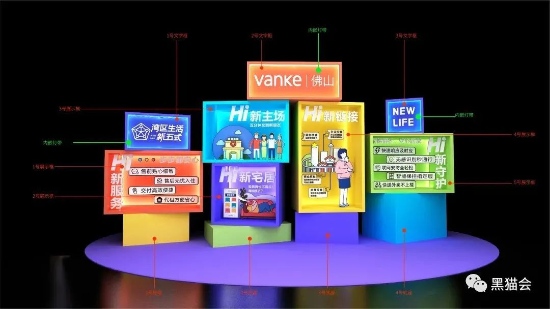 万科佛山新生活主张发布会,以“Hi!我们的新生活”为主题,比起嗨,Hi更简洁,更有表现力。同时,Hi还结合了其他打卡点,趣味十足!