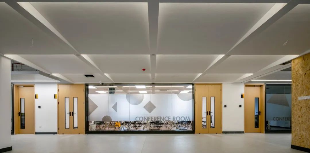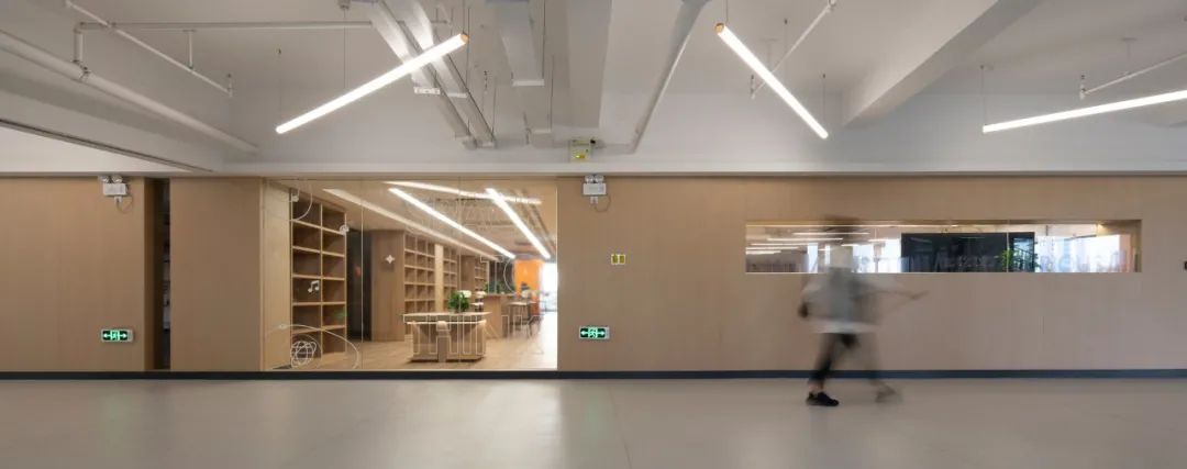 条形灯具的不规则布置及条形环境光的运用,突破了传统教学连廊用光的单调乏味,强化了空间的艺术感和指引性,有助于增强学子们彼此的穿梭互动。