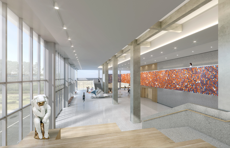 此项目坐落于佛山市南海区桂城街道三山新城F02街区,项目建筑面积约26000㎡,地上六层,地下一层,室内功能空间包括但不限于:大堂及公共交通走廊、展厅、餐厅、健身房、图书馆、报告厅、各艺术专业科室、学术科室、教师办公室等功能用房。