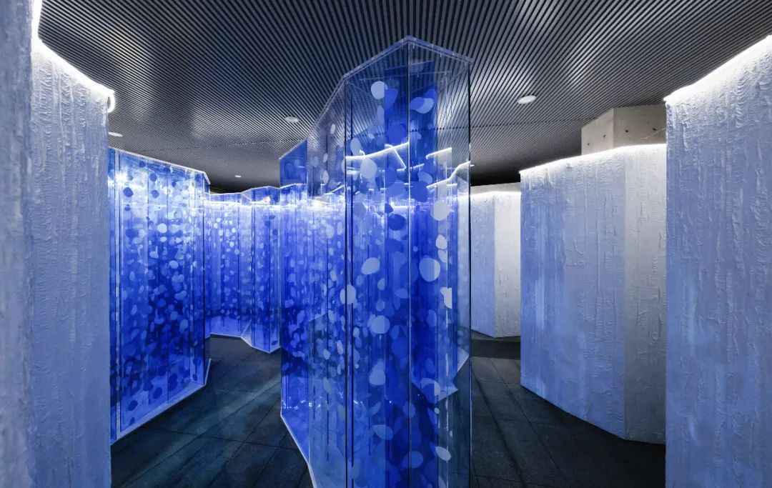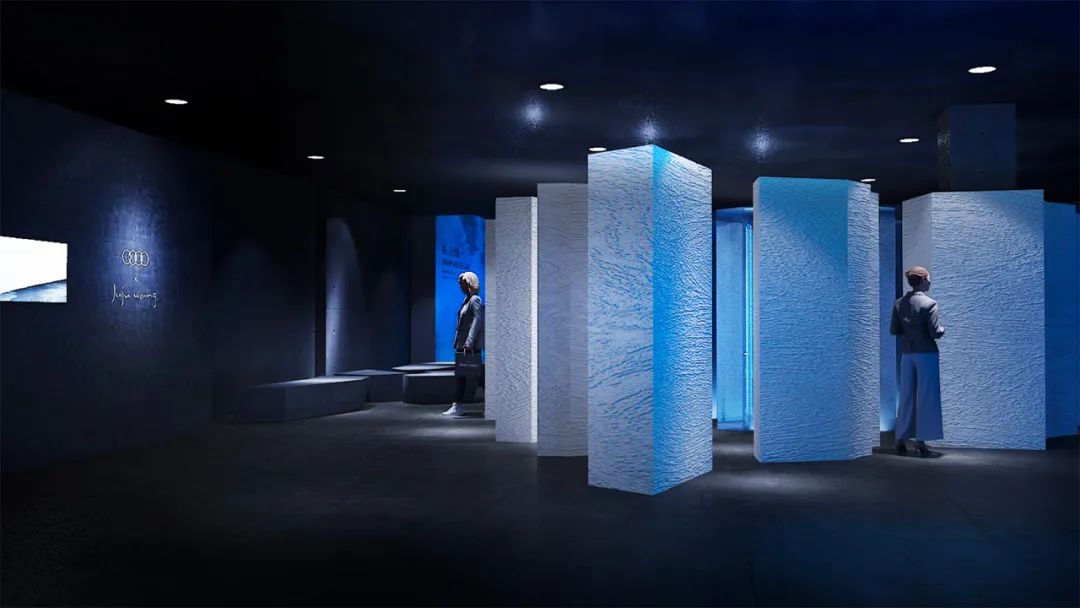 层峦冰山如在浩渺北境平地而起。高耸的白色冰体围出一个独立的沉浸式艺术空间。远眺,仿若凝望壮美冰原。近看,走进如迷宫般的冰山内,白色冰川由外及里逐渐向迷人的蓝冰演进,冰体表面形成光滑的切面,散发出锐利的锋芒。一切都仿佛在诉说着新奥迪A5迸发出的无尽灵感。