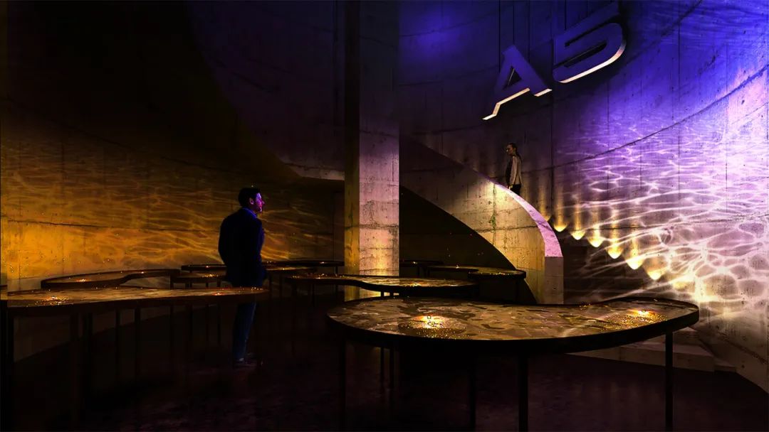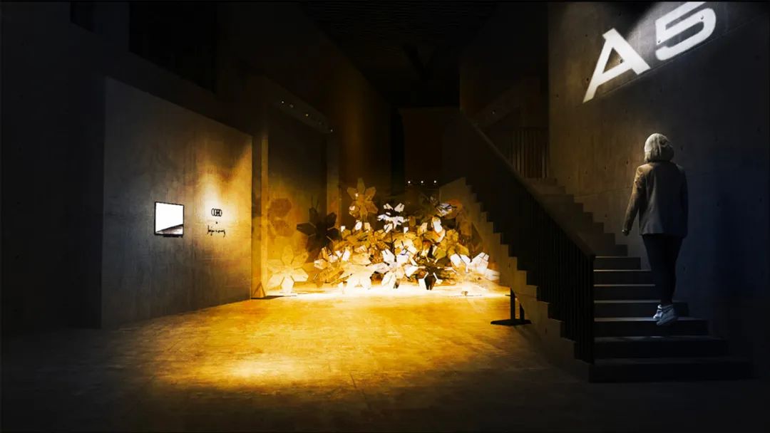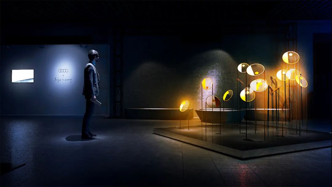 作品源于一个经典的哲学问题“即使太阳升起了几亿次你也不能断定明天的太阳是否会照常升起”。镜面反射的平台上,人与圆盘发生互动关系,圆盘翻转,不是每一个圆盘内的圆球都能抵达顶点,象征人无法用归纳法从现有事物判断未来事物。历代奥迪A5设计手稿与该作品构成全新的结构氛围,寓意未来A5的设计无法用归纳法给出答案。观者带着这个哲学问题继续移步前行,在下一个空间探寻新奥迪A5的设计哲学。