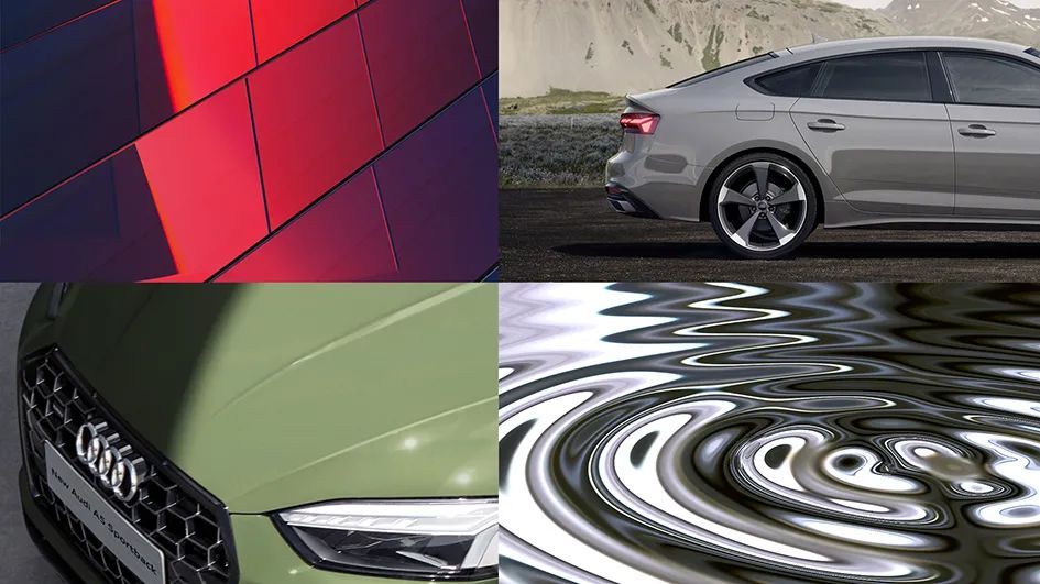 22片六边形雪花组成了一个三维的大自然空间。雪花上的图案受大自然启发,以中国传统手工艺金箔展示于镜面之上,仿佛遵循自然顺序,从上层的天空与云层开始,至山脉与森林,最后抵达下层的岩石与水面,大自然景观被种植到金箔图案中。单片雪花尽显晶体的锋芒,而22片雪花整体又构成了一个和谐统一的优雅空间。正如新奥迪A5的车身线条。对肩线的精确处理,藏锋于拥有完美弧度的溜背与鸭尾曲线间。锐利与优雅,浑然天成。