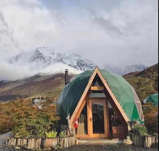 在托雷斯德尔潘恩国家公园中,沿着远足小径跋涉,你能遇见冰川、雪山、湛蓝的湖泊、标志性的花岗岩石柱和众多独特的野生动物,陶醉于其多层次的生态环境中。公园内有多条远足径,其中最著名的“W”路线,通常需要大约 5 天走完,你可以在小径沿线的休息点寻找住所和基础服务。这里还是少数允许使用野营炉做饭的地方之一。如果您对“精致露营”感兴趣,一定要尝试一下托雷斯德尔潘恩国家公园的 “巴塔哥尼亚生态帐篷营地”。这个营地的“帐篷”其实是玻璃和木头结合的球状房屋,玻璃墙让你无论在室内室外都能拥有极佳视野,木屋与其身后的山峰相映成趣,自身也成为一道亮丽的风景。