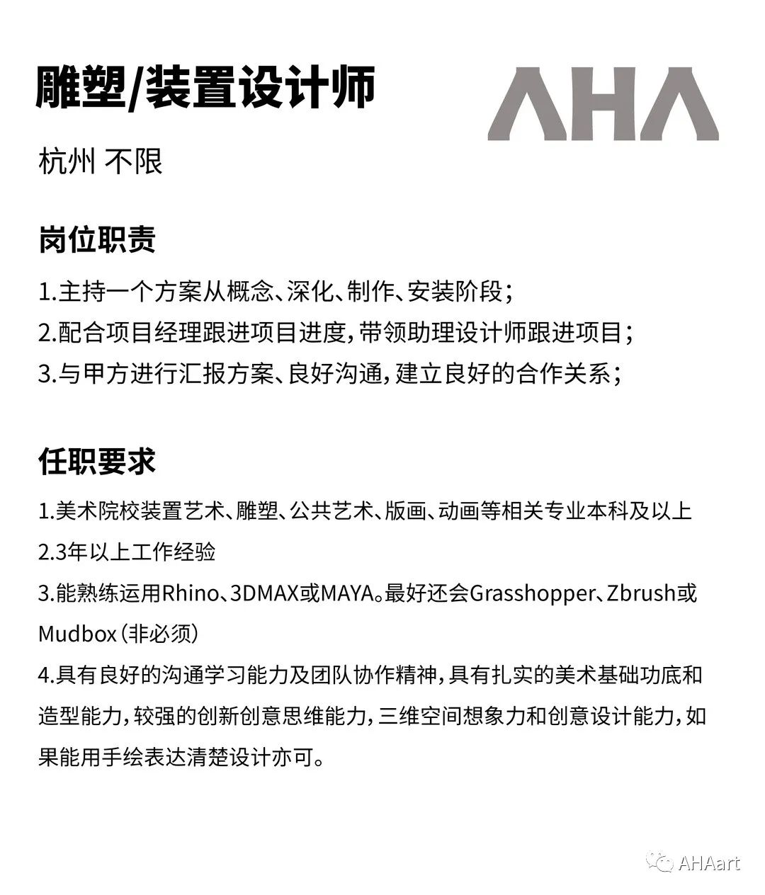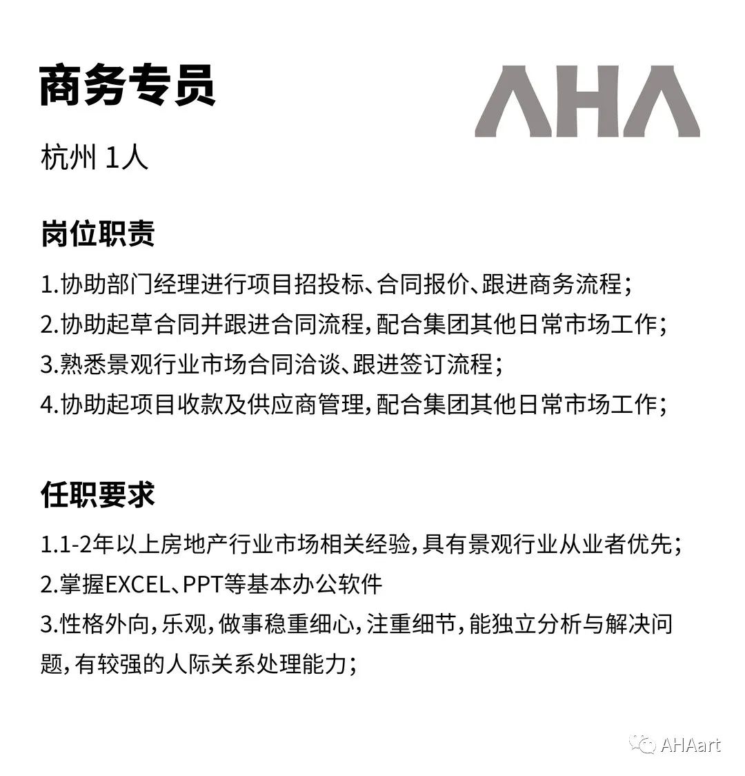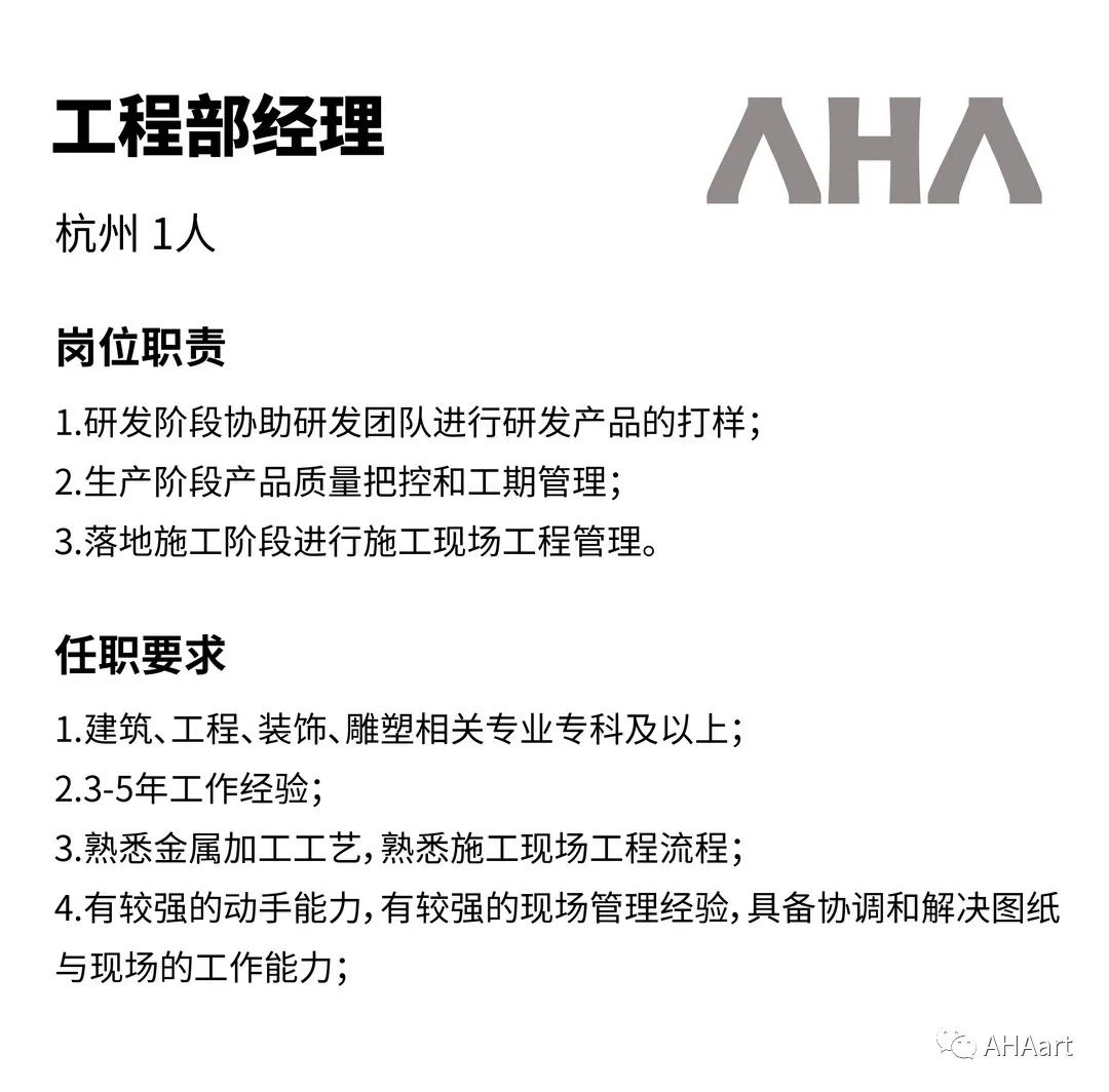 - 【杭州】AHA招募 商务专员、工程部经理、装置设计师、游乐设施设计师......