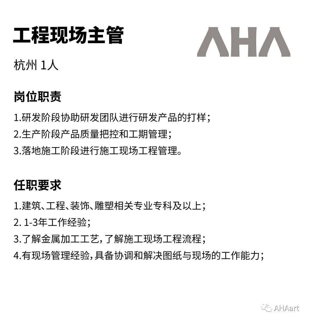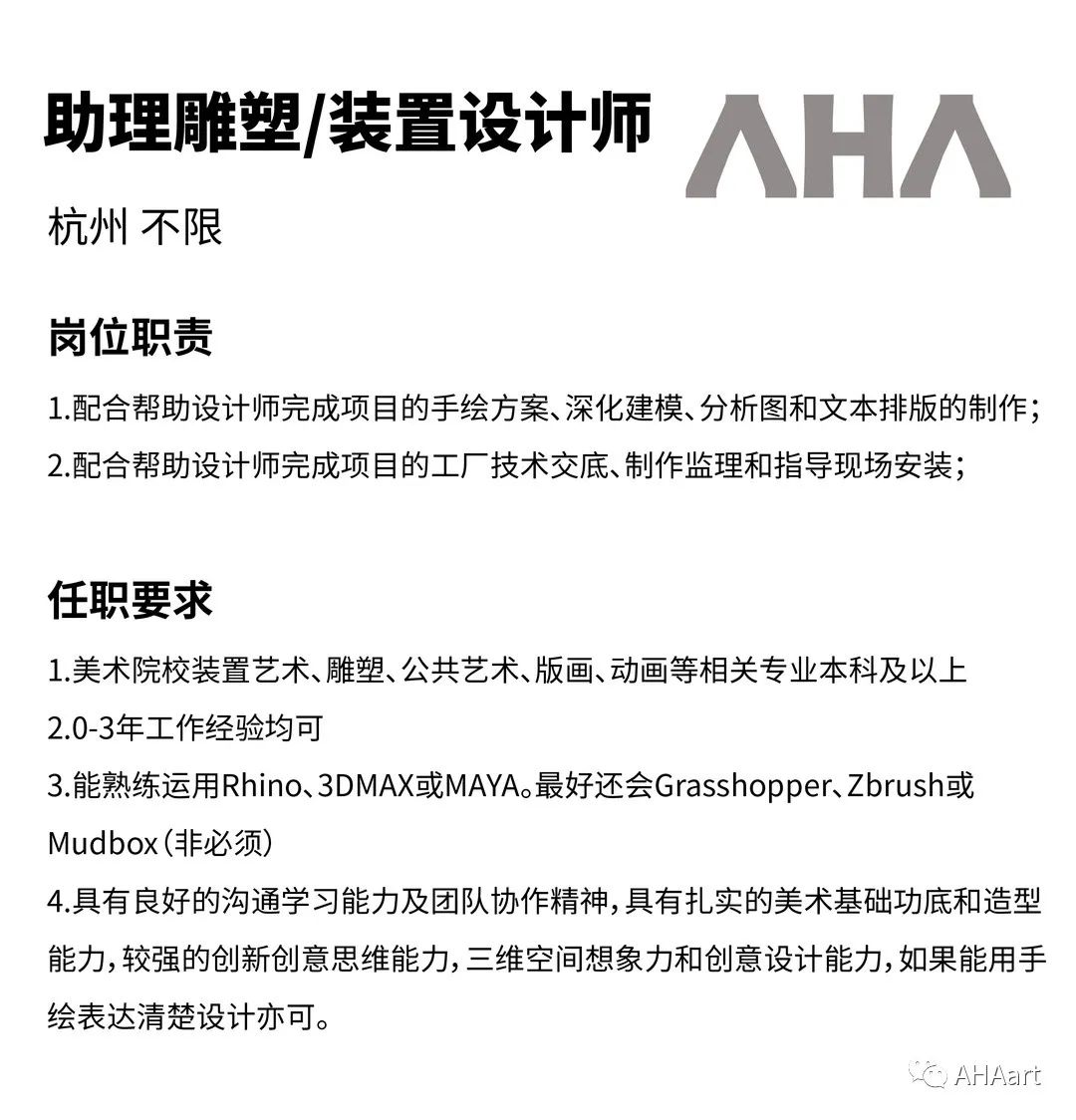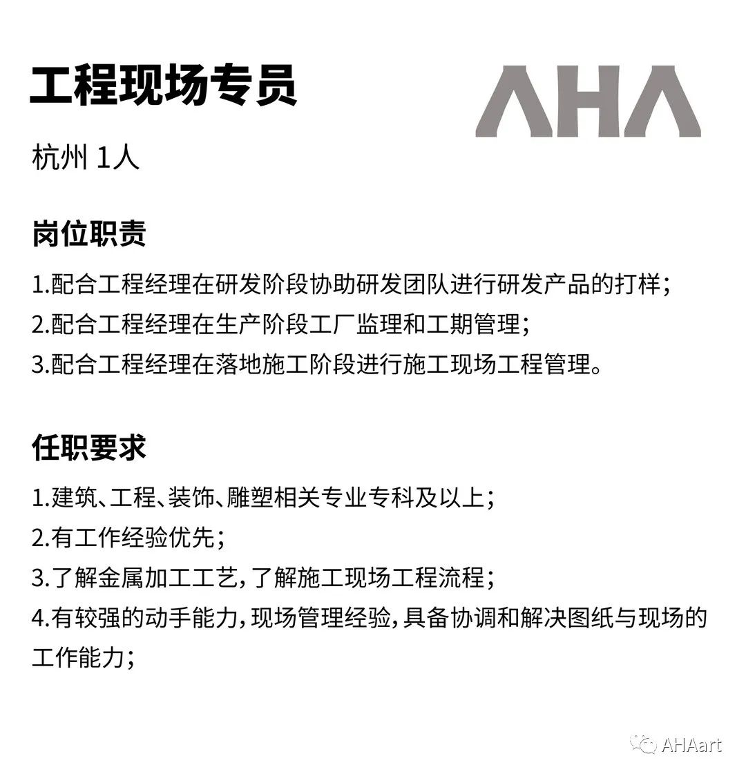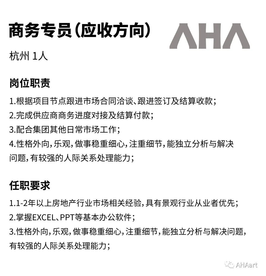 - 【杭州】AHA招募 商务专员、工程部经理、装置设计师、游乐设施设计师......