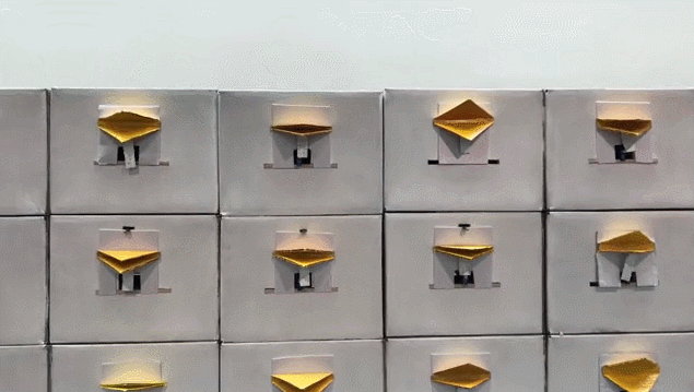 36个鸭子嘴巴在以不同的形态不间断地进行开合运动,嘴巴连接了光敏传感器,当观者靠近时影子会挡住光源,嘴巴开合更快、更吵。就像一些人,远看挺烦人,走进更烦人!遇到这种人只管远观图一乐,不要让他影响我们的心情。
