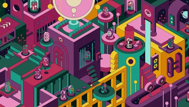 考虑到这次是一个快闪性质的乐园,体量面积都不会过大,因此,选取【奇点世界】中的起源场景,将其打造为“奇物工厂”,这个场景主要交代的是奇物仔们的起源,同时也是现实次元通往奇点世界的第一站。