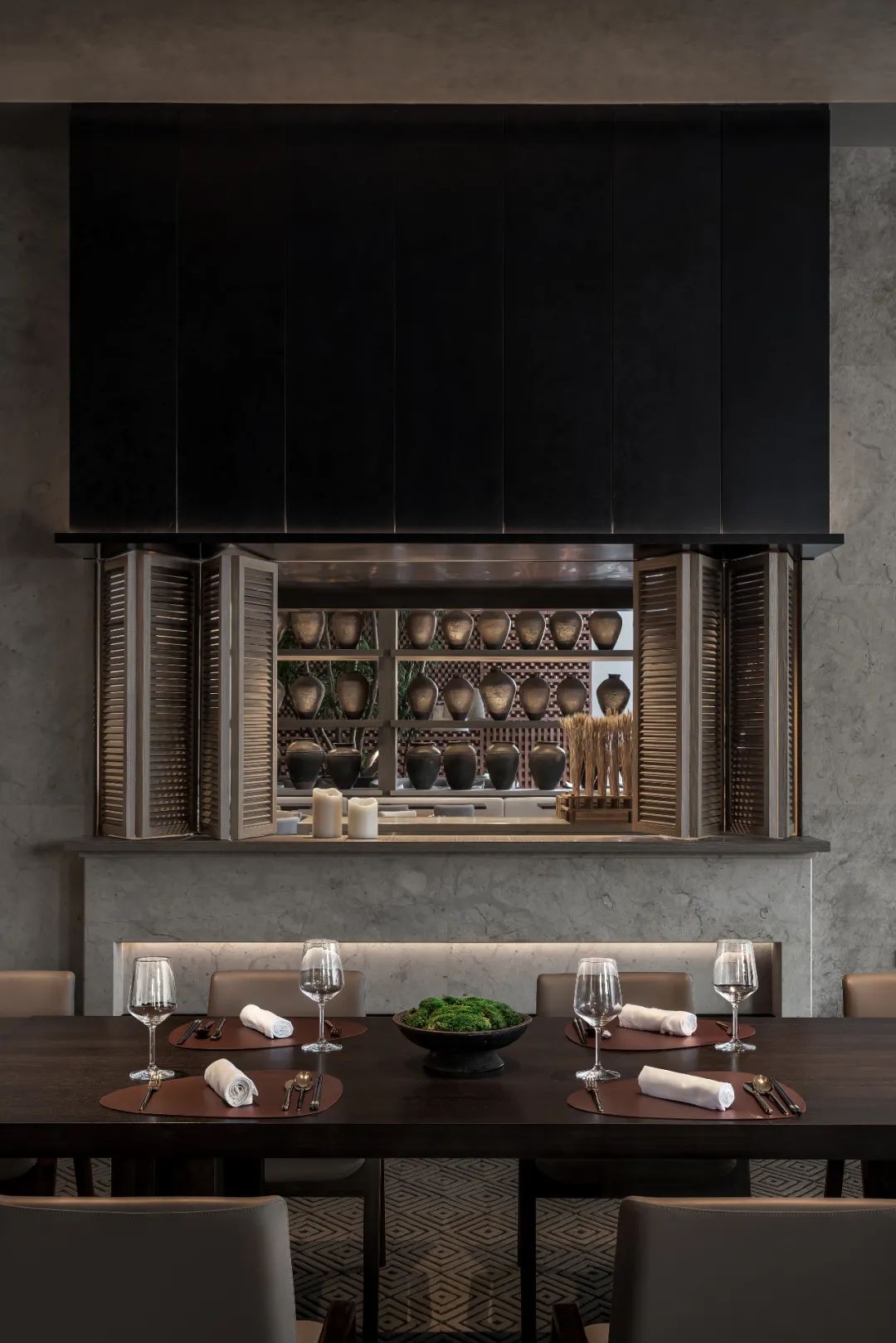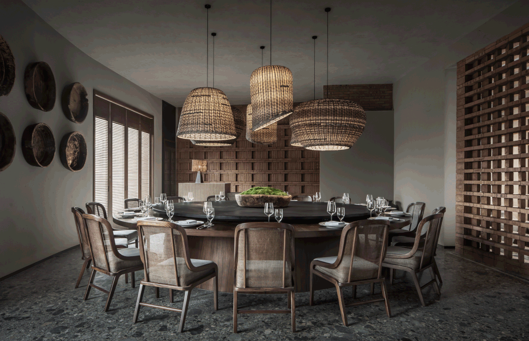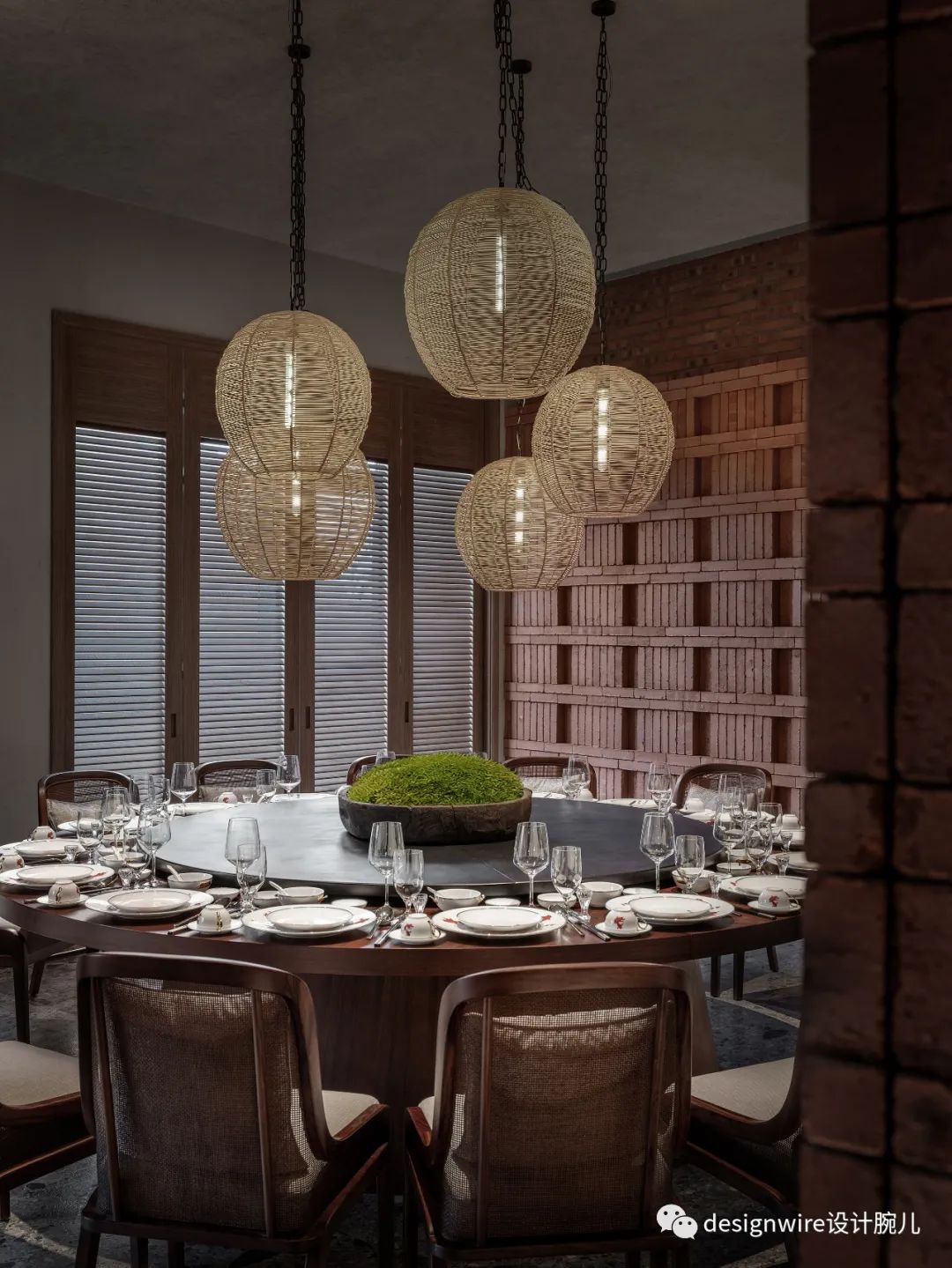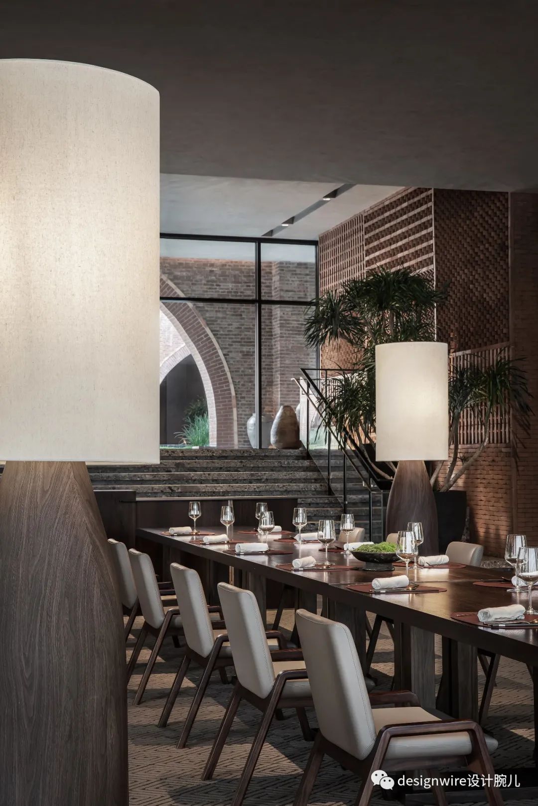 餐厅墙面采用当地的红砖,其组砌和材料组合方式将手工艺的温润触感和当代的创新语言结合起来,通过多样化创造出无限可能。中餐厅