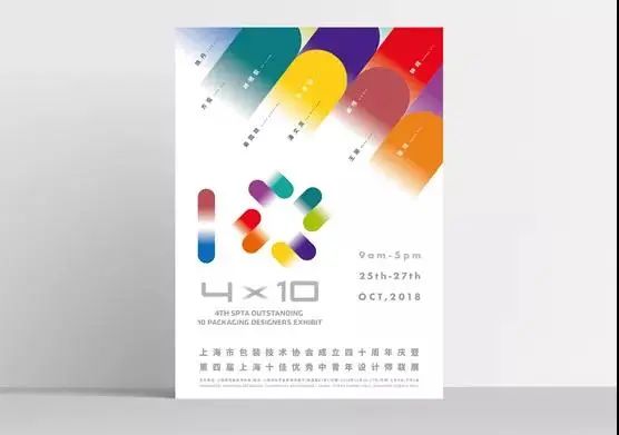 设计说明: 四十华诞,薪火相传。上海十佳优秀中青年设计师联展是上海包协“十年磨一剑”的一项重要活动,旨在向行业与社会推出新一代的中青年优秀包装设计师。第四届上海十佳优秀中青年设计展形象标志设计以“盛放”为灵感,由10个运动着的抽象的花瓣构成,相互提托,寓意上海包装设计的欣欣向荣、蓬勃发展。10强调了“每十年举办一届,一届评选出十人”的独特性。