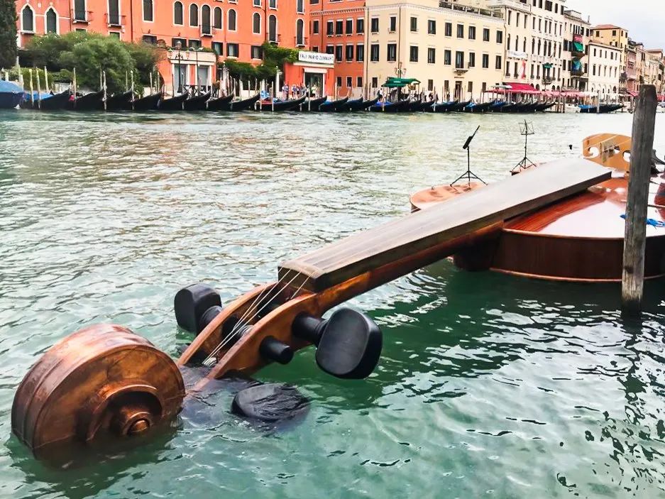 - 意大利著名艺术家Livio De Marchi又出新作品啦!可以在水上航行的小提琴你见过吗?