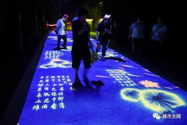 ▲游人行走在动态的唐诗宋词投影中 杨华峰 摄