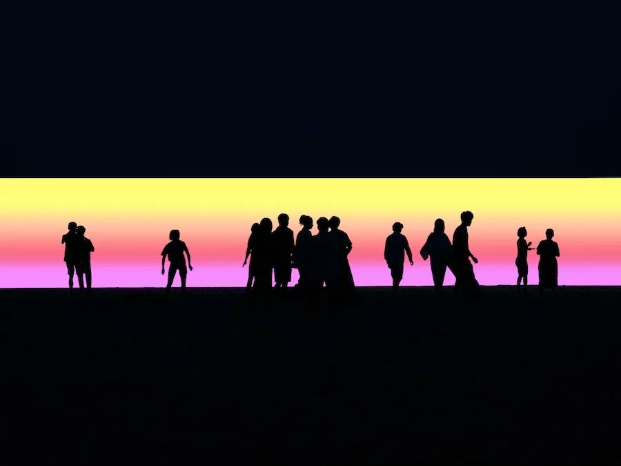本次在中国展出的《Continuum连续体》同样如此。作品延续了克里斯塔·金对数字冥想艺术的探究。面对这件作品,观众可以安静地坐在细软的沙滩上,在渐变的光谱和舒缓的音乐的引导之下,渐渐放下世俗纷扰,专注呼吸与冥想,回归本心,体验身心合一的境界。