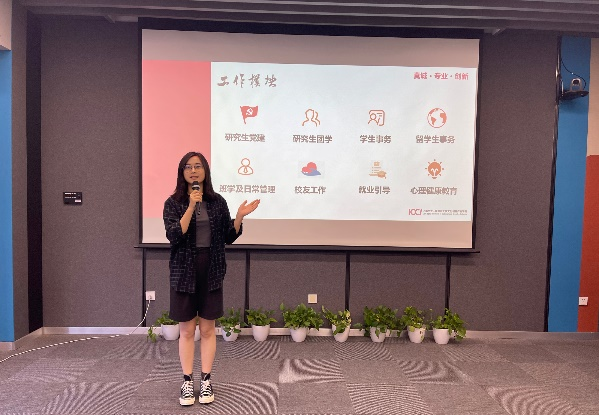 综合办公室副主任施艳婷老师就2021年秋季学期文创学院勤工助学岗位需求的信息做了介绍。