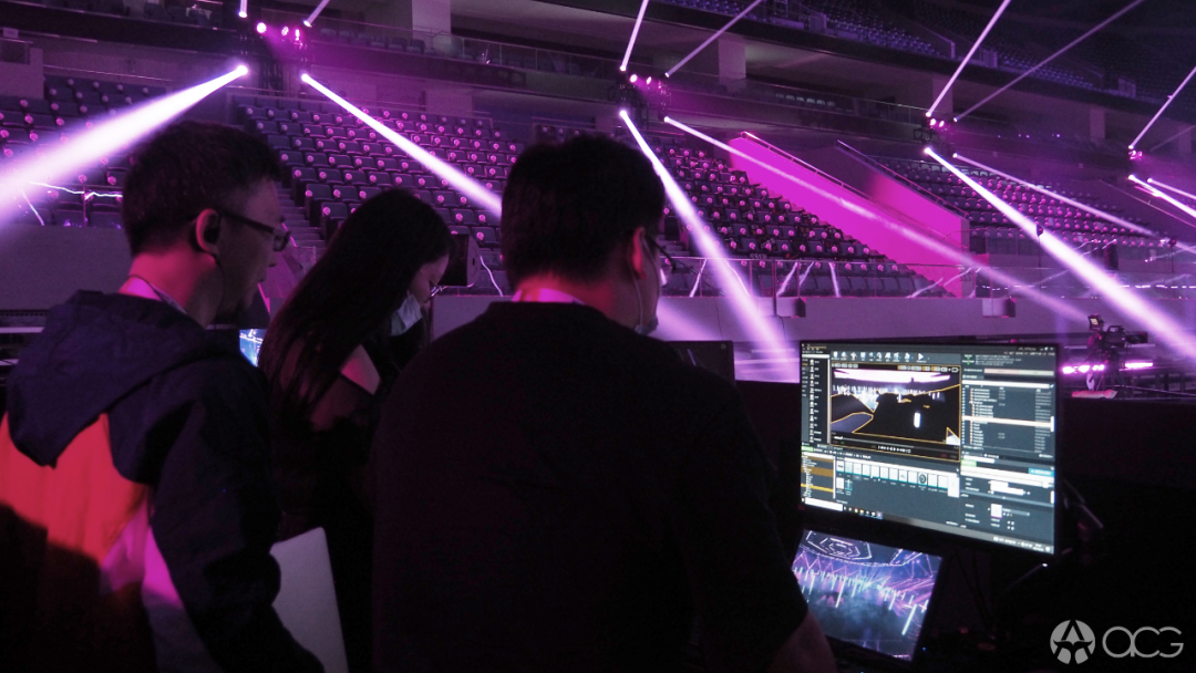 遍布着战争迷雾的峡谷里,在河道草、三角草等地插眼,游戏地图逐渐点亮,无数的插眼激光柱变换成粒子,汇聚在大屏上。
