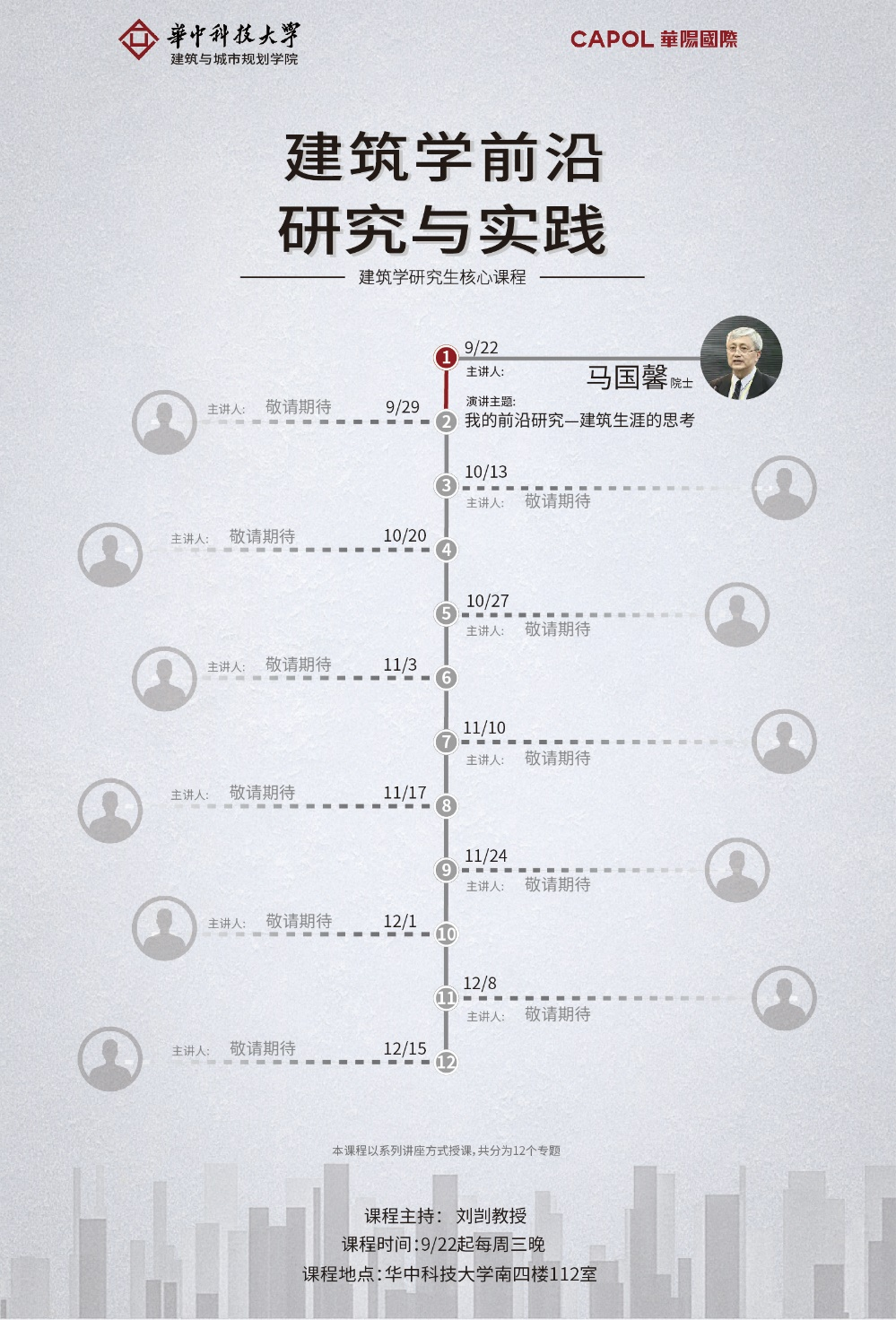 为此,华中科技大学建规学院开设了“建筑学前沿研究与实践”研究生课程。课程共分为12期,主要采用系列讲座的形式进行,并同步开放线上直播,为更多热爱建筑学专业的全国高校学子提供共同学习交流的平台。本次课程的开设获得华阳国际设计集团的全力支持。