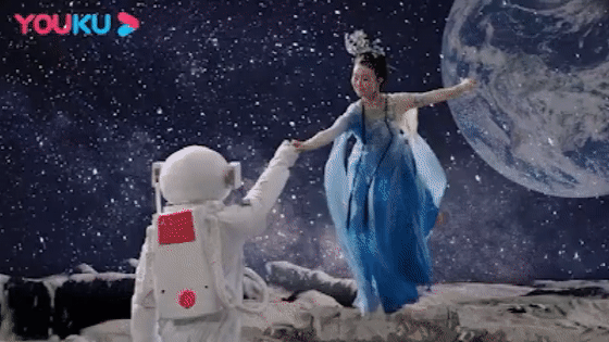 在最后的节目里,还能看到嫦娥和宇航员跨时空同屏在太空遨游的场景!