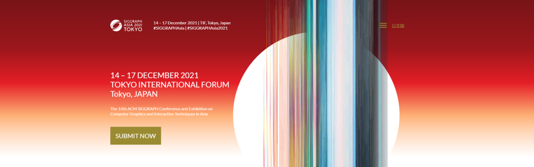 SIGGRAPH Asia由国际图形图像协会(ACM SIGGRAPH)举办的SIGGRAPH电脑图像和互动技术展览及会议是世界上影响最广、规模最大,同时也是最权威的一个集科学、艺术、商业于一身的CG及互动技术展览及会议。SIGGRAPH Asia将于2021年12月14日至17日将在日本东京以及线上会议形式同时举办。