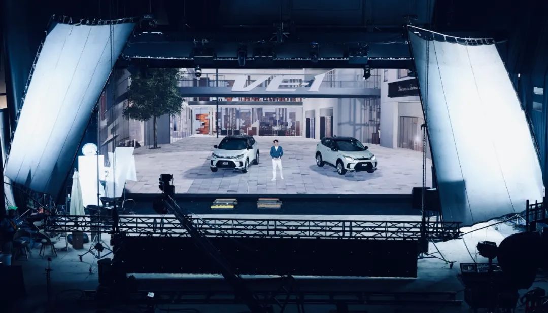 亮点总结:摒弃赛博未来科幻场景以及传统舞台,用XR技术模拟真实青春潮流人群聚集的「智慧潮街区」作为发布会置景,更加贴近Z世代真实的生活场。出车环节的CG制作也让新车亮相更具质感。