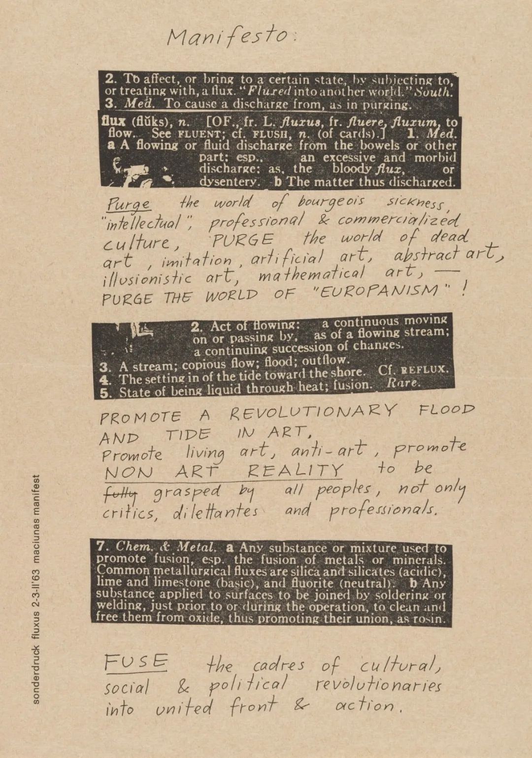 乔治·麦西纳斯(George Maciunas)《激浪派宣言》(Fluxus Manifesto),1963年