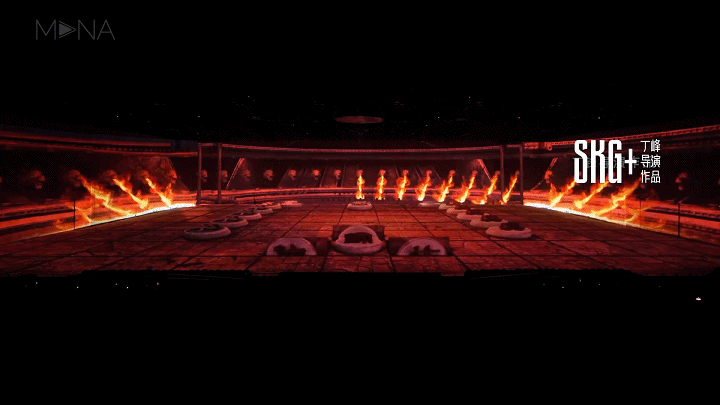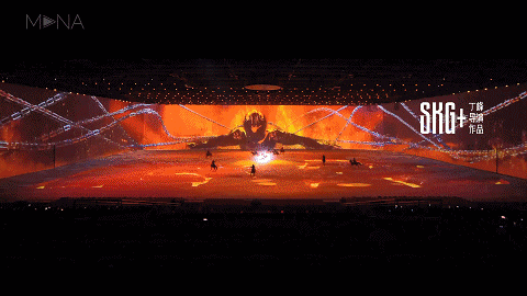 这部由丁峰导演执导、泛亚文旅策划的大秀在一座面积 7000 平方米、空高 20 米的全景体验剧场举行,这部舞台剧分为《以尘入马》《雪飔滹沱》《秋牧赛歌》《鏖战殇祭》《飞马巡城》五幕,我们 SKG+ 则负责其中的大部分视觉内容创作。