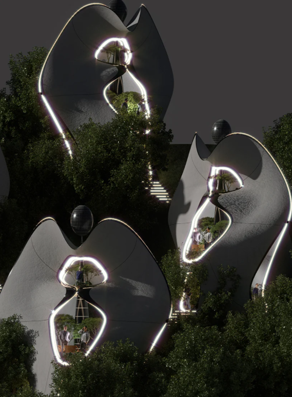 古老与现代的对话,是艺术家们难以舍弃的话题,这次我们用代表新生力量的东西与千百年的竹林进行对话,用这个时代非常鲜明的标签:表情符号、新媒体、Z世代,融到竹林里,再照映到石扶梯水库。