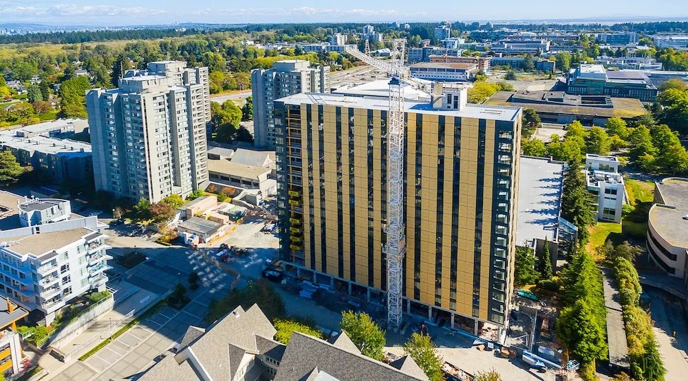 在讲座最后,陈老师向大家提出了一个问题——未来的超高层建筑发展的会变成什么样子。并列举在目前超高层建筑中设置机械臂逃生装置或采用木结构建造超高层建筑的实例为大家进行深入启发。