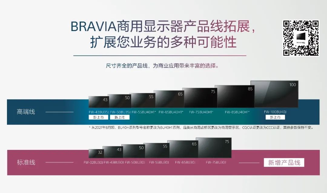 索尼在不久前推出了BU30J系列的32英寸显示屏产品,由此也补齐了这一系列的最后一块拼图。目前索尼BU30J系列实现了从32英寸至75英寸的全尺寸覆盖,可以满足各种商业场景下的应用需求。
