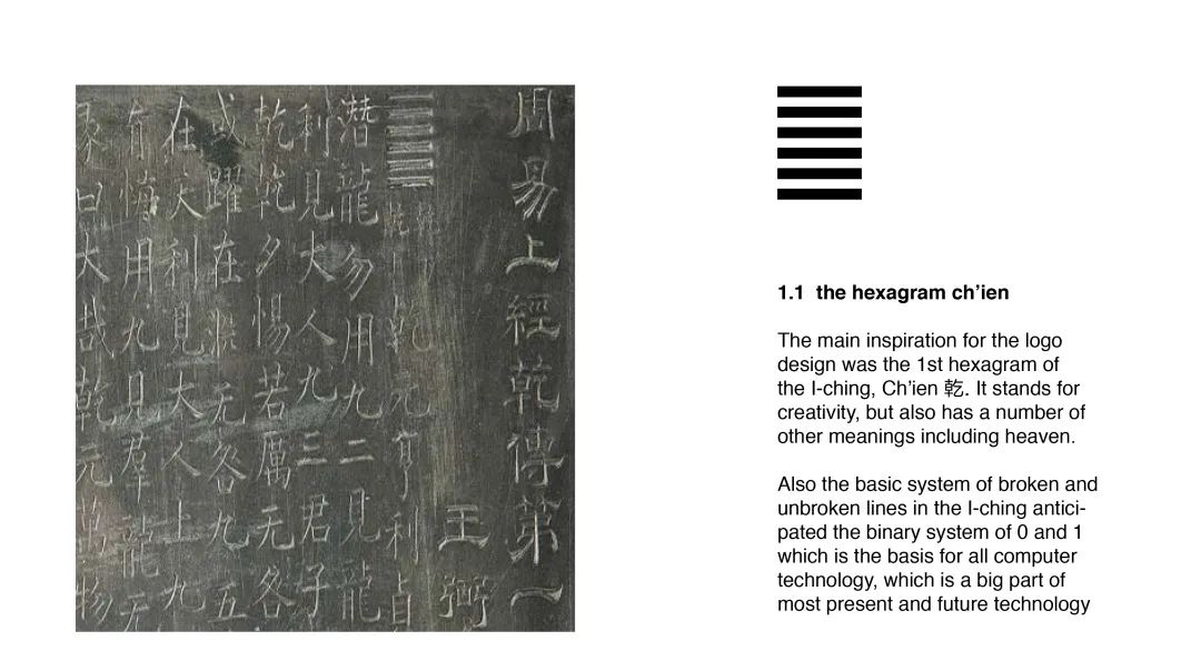 ▲Logo的设计灵感来源于《易经》的第一卦——乾,它代表创造力。《易经》中的虚实线系统,也预示着计算机技术的基础——由0和1构成的二进制系统,这也是现在和未来技术的重要组成部分。