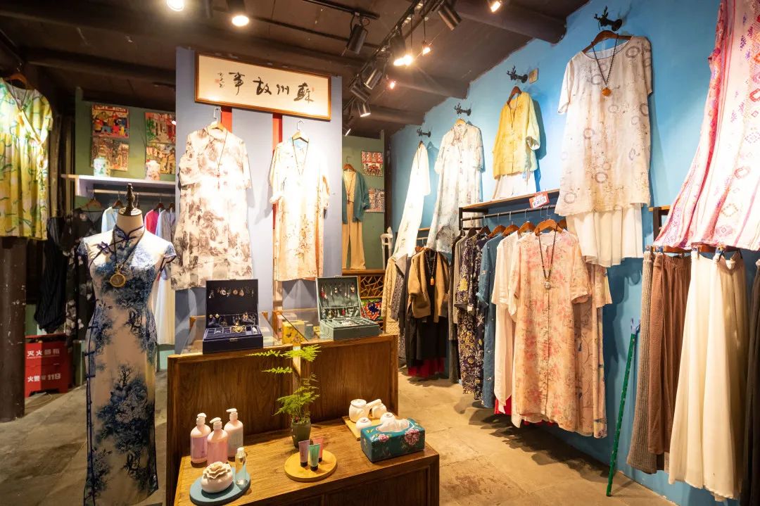 江南布衣,不可思议。花间拾零民族时装来啦。花间堂正对面解锁好穿的中式传统美服,进去逛逛一定会有意想不到的收获。